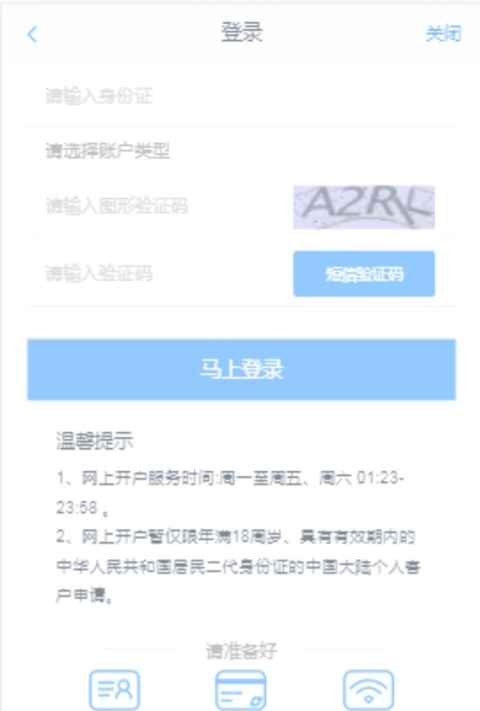 4、着会到业务选择页面,点击开立期货账户会进入到登录页面,如图所示