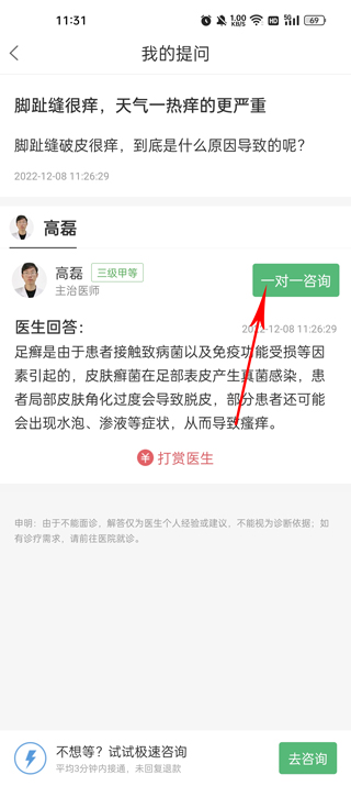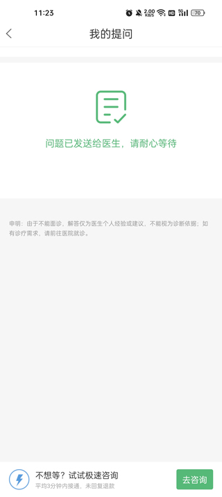 另外,在快速问医生app上,用户还可以免费咨询看病,操作也十分简单,只需要发布自己的症状,等待医生回复即可。如果你想详细了解病症,可以根据自己病症的需要,进行视频或者语音详细的了解,非常的方便,用户足不出户就可以找到根除小病小痛的方法,有需要的用户可以来本站下载使用。