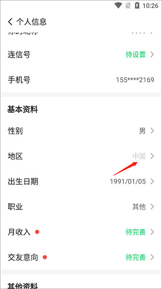 3,点击地区选项