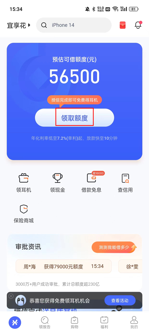 2、根据步骤提示操作完善好相关资料信息,提交审核获取审批额度。