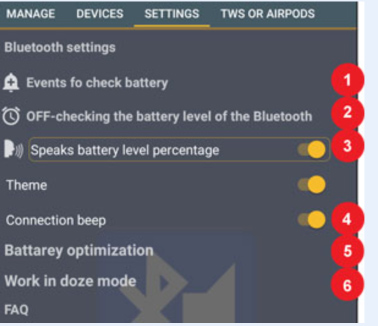 -增加有关电池电量的语音消息之间的时间(对于带有内置电池电量检查功能的Android砝码,用于蓝牙设备)。