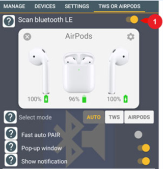 1、扫描Bluetooth LE设备。如果您不使用Airpods或TWS音频设备,请断开连接以节省电池