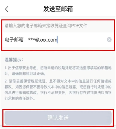 3、选择下载年度凭证后,输入您的电子邮箱并确认发送。