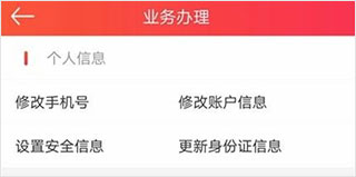 4、进入业务办理页面,找到个人信息,然后就可以看到修改手机号,修改账户信息和更新身份信息等服务;