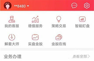 3、全:开户、行情、交易、资讯、融资融券、理财、业务办理、金股在线(投顾产品)、实盘金股(投顾产品)、添迎利、兴e融、客服1对1;