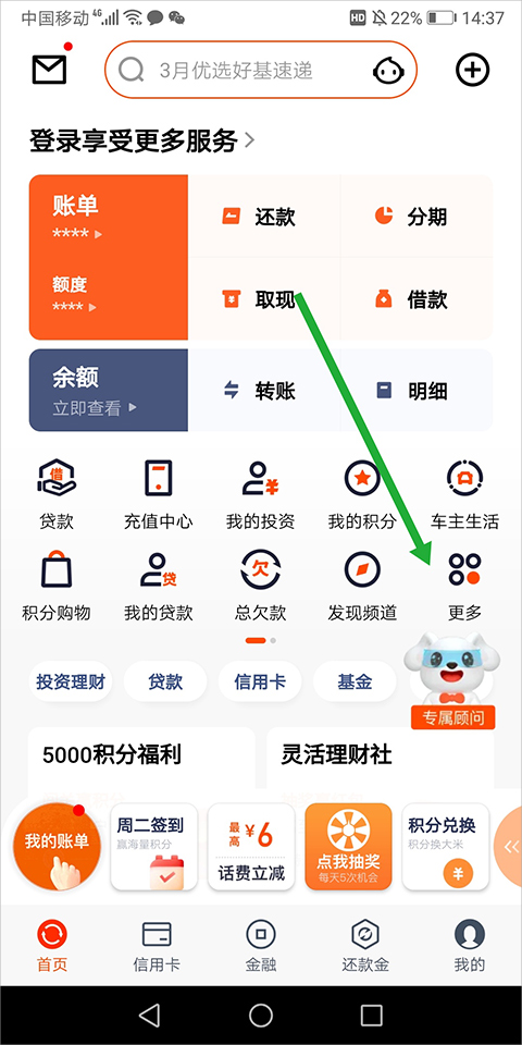 实时查询可用额度 及信用卡账户积分