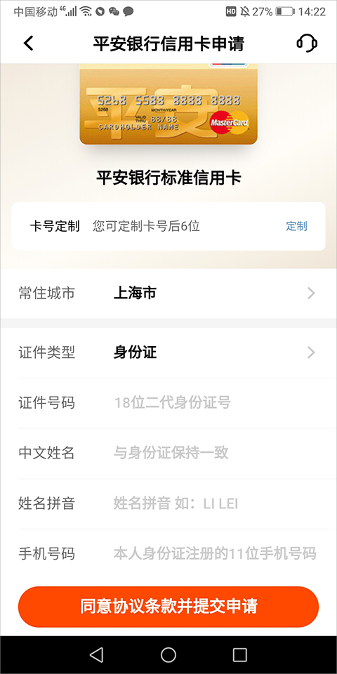 7、申办信用卡时,用户如果勾选实体卡,平安银行会寄送到用户手中,如果没有勾选,可以进行补发