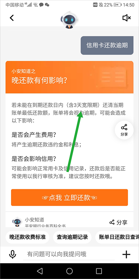 根据下方官方客服页面截图可以看到平安信用卡逾期宽限期为三天