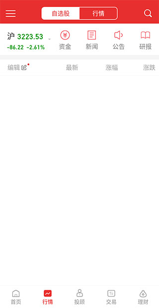 2、行情页面支持用户添加自选股,只需要点击左侧的编辑按钮即可,或者可以点击上方的按钮,切换至行情页面。