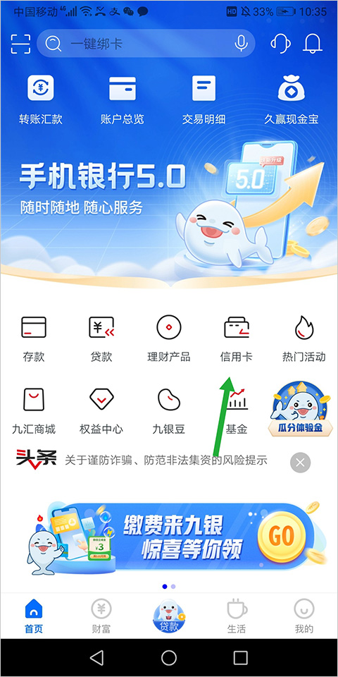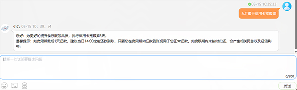 也可以进入九江银行信用卡app,即九江银行app的在线客服页面中,选择【信用卡服务】点击进行咨询