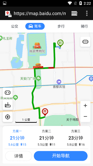 3、此时就会出现具体的导航路线,我们可以直接观看地图进行形式,也能通过导航进行操作,例如点击下方的开始选项。