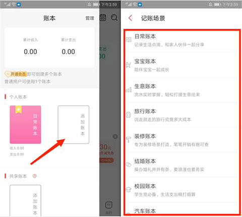 点击【首页】左上角图标【账本】,进入多账本页,选择“添加账本”即可。