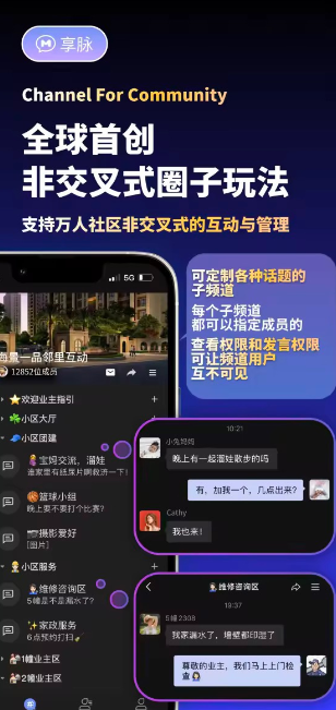 5、全球首创非交叉式圈子玩法,支持万人社区交叉式的互动管理。