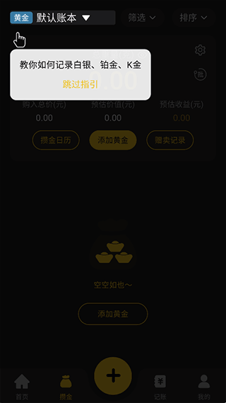 5、然后就可以根据指引新建账本来实时记录你的贵金属金融产品的收益情况