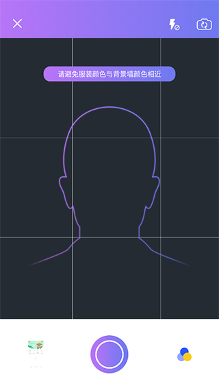 拍照攻略分分钟get证件照拍照要领。拍照时智能提示背景色、姿势、光线……严格检测后生成合格证件照,轻松美丽拍证件照。