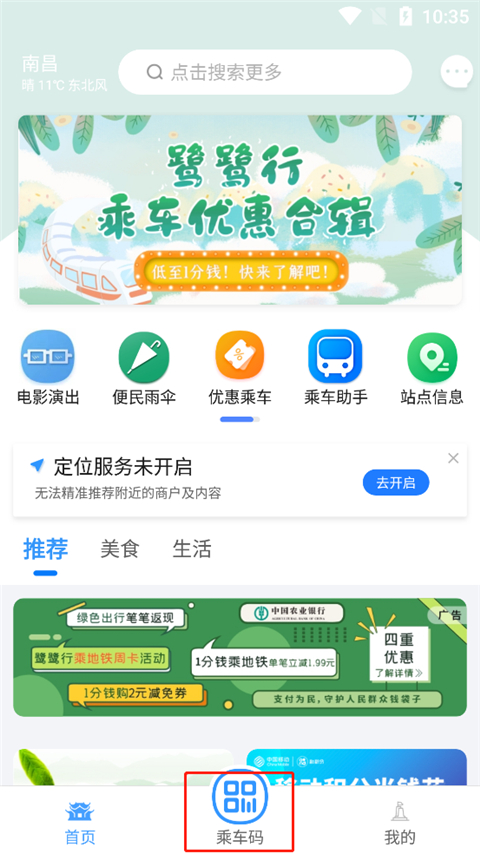 1、当乘客进站/出站时,打开“鹭鹭行”APP,点击首页“乘车码”即可获取地铁乘车二维码。