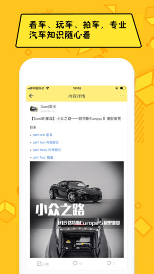 1、丰富内容:汽车体验、汽车知识、改装赛事以及生活、旅行等优质内容。