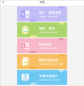5、拼图拼视频:支持多种模板,图片和图片拼图,图片和视频拼图,视频和视频拼,也支持长图拼接。