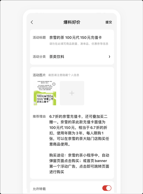 推荐理由:描述活动信息,分享得到此价格的购买途径。丰富的推荐理由,会让爆料通过率大增并获得更多奖励。