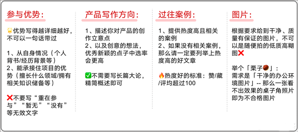 申请约稿笔记时,一定要注意个人优势和相关品类的高热优质案例的提交,认真填写才有利于后续中选呀~