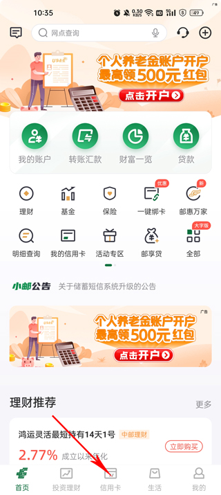 邮储银行信用卡app是由中国邮政储蓄银行打造的新一代手机银行,轻松实现网上银行的业务。不仅提供了查询、转账、挂失等银行中的业务,还为用户提供了投资理财、信用卡、手机支付、生活交费、行政缴费、公益捐款等多项业务,随时随地只需用手机操作下,即可轻松解决用户所需办理的业务。邮储手机银行系统按照"以客户为中心"的理念设计和构建而打造,只为让用户在使用手机银行系统时感到简单、方便、安全、快捷、时尚。