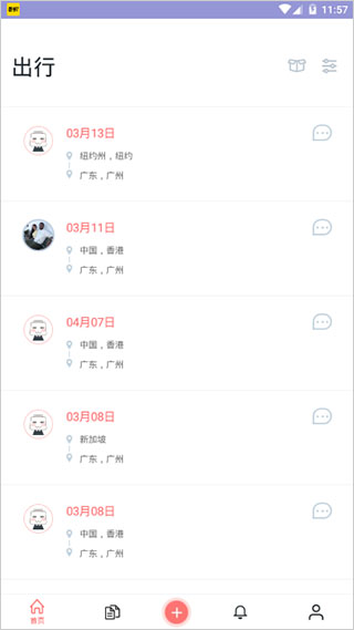1、下载安装,注册登录,游箱app共分为6个一级入口,分别为"首页""消息""订单""个人中心""filter"和悬浮按钮。进入到游箱首页,可以看到推荐出来的游箱出行用户,点击每个行程右方的聊天按钮,可以直接和该用户聊天。点击行程卡上的空白区域,可以直接进入寄件信息填写页面。