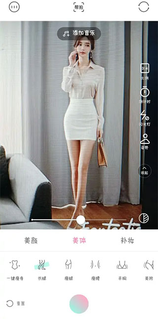 点击【美体】,把瘦身,长腿,瘦腰,瘦手臂等,都调得到50%左右。