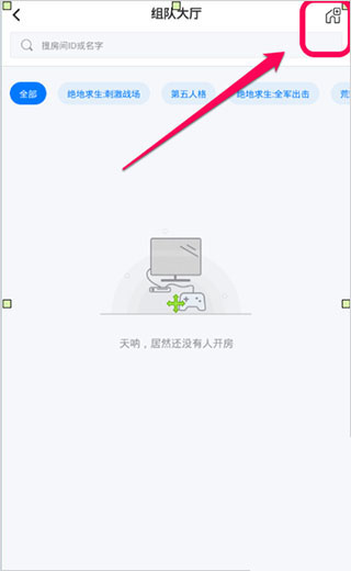 2、可以看到目前还没有创建游戏房间。我们可以点击右上角的房子进行创建。