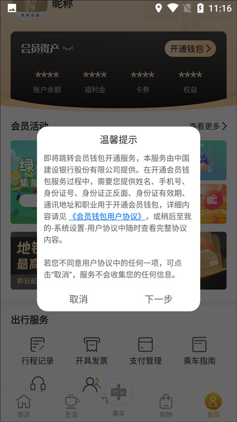 1、登录软件打开,进入会员选项,找到钱包功能