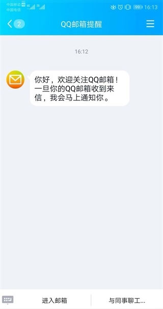 2、选择公众号后我们找到这里的QQ邮箱提醒,如果找不到,往下拉就有了。点击底部的进入邮箱,然后会提示需要安装手机端qq邮箱,点击下载安装即可。