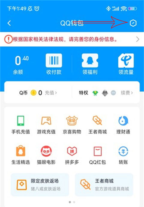1、进入QQ选择个人头像,选择我的QQ钱包进入设置