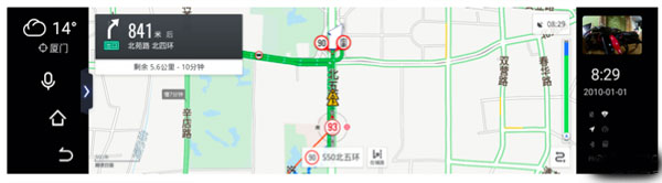 在驾车出行中,车主经常遇到多种出行需求并存的局面,如接听蓝牙电话、播放音乐,而常用的智能后视镜固定在原车后视镜位置,抬头操控容易分散注意力。车镜版新增的悬浮窗功能,即体现了“轻导航”特点,通过将必要的导航信息以卡片形式悬浮在界面上层,让用户无需切换回导航界面,即可读取车速信息、电子眼、超速预警、导航引导等信息,降低了因人机交互带来的交通风险。