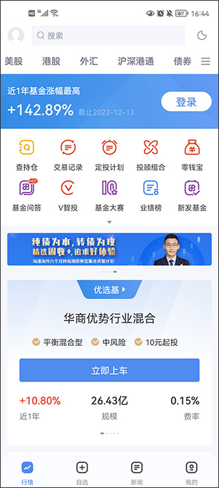 2、为您提供了特色产品自选股,包括沪深自选、港股自选、基金自选和美股自选,方便您对自己的股票及基金进行快速查看和管理。