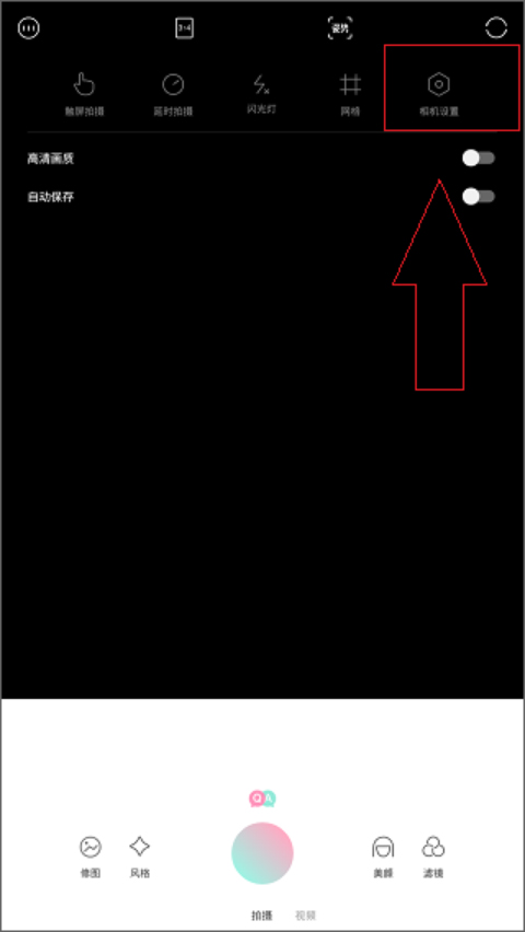 2、然后将静音拍摄功能开启即可关闭拍照声音。