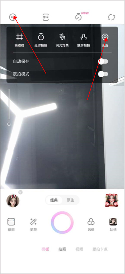 1、打开【一甜相机】,进入界面之后,点击左上方三个点,选择进入设置。