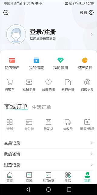 贵州农信手机银行app是由贵州省农村信用社联合社官方推出的个人手机银行应用,历经多次版本的更新迭代,现手机客户端已正式改名为黔农云,应用也别称为贵州省农村信用社手机银行app或贵州农信银行app。该应用在用户使用手机号免费注册登录后即可绑定自己在该行的账户,绑定方式十分简单,只需要输入银行卡号和身份证号,完成身份验证操作即可绑定成功。接着用户就可以随时随地享用银行金融服务,如余额查询、交易明细查询、行内转账、跨行转账、手机充值、贷款服务、生活缴费等。