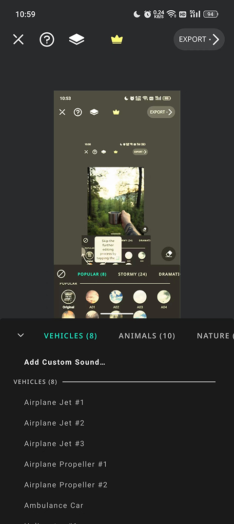 4、单张照片可支持添加多达10个不同的特效、滤镜或动画部件。