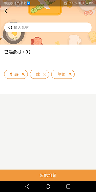 例如下图所示,有三个食材添加进来后点击底部的【智能组菜】按钮