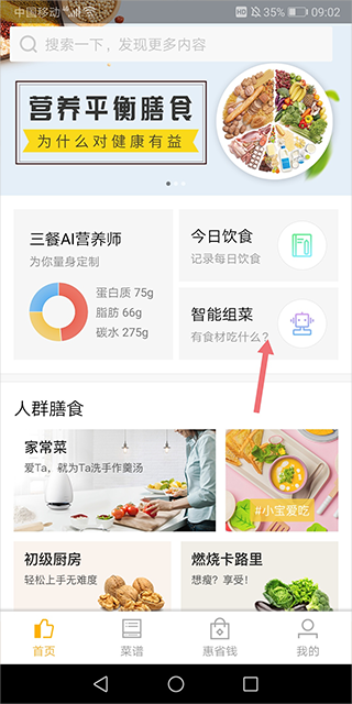 用户在首页处点击【智能组菜】