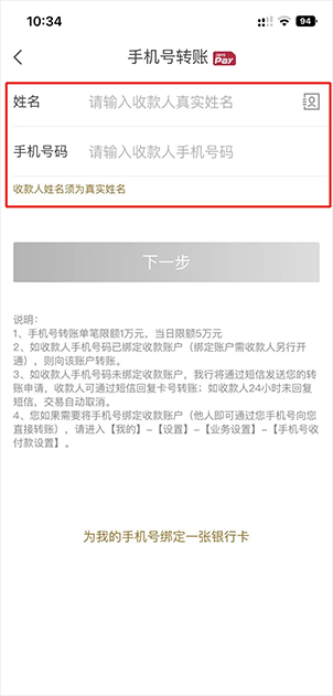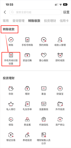 手机银行首页“全部”—进入列表,选择“手机号转账”;