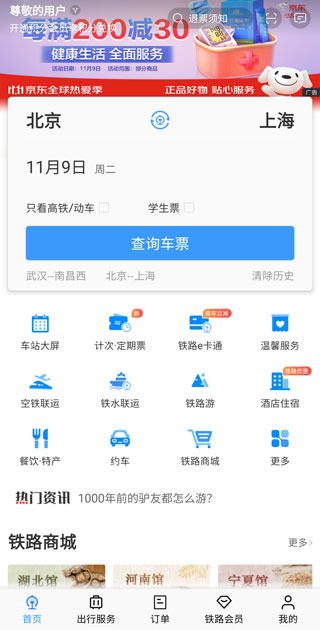【其他功能】购买高铁,动车票,同时支持12306网站和铁路12306购票。