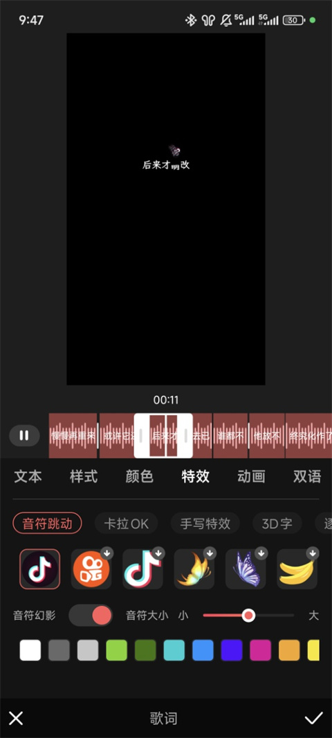 3、识别音频添加标题,并调节字体样式