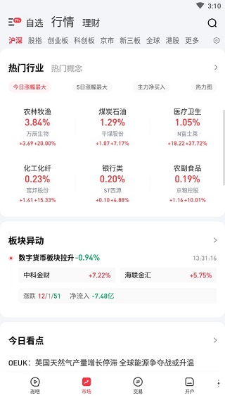 7、市场行情——A股、科创板、港股、股指、沪伦通、场外基金、国内期货、国际期货、国际汇率,都在这里。