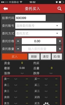 6、当我们要买卖股票的时候,点击“买”、“卖”、“撤”我们就可以完成相关的交易,如果您不在行情页面点击“点击“买”、“卖”、“撤”需要输入相关的信用上,如果您在观注浏览器行情的时候,突然发现这只股票走势不错,您可以点击下面的菜单买入,此时你只要输入委托数量、与委托价格,如果委托价格可是买5档的价格,那么点击5档买相应的价格直接上屏幕。然后点击“买入”交易完成。