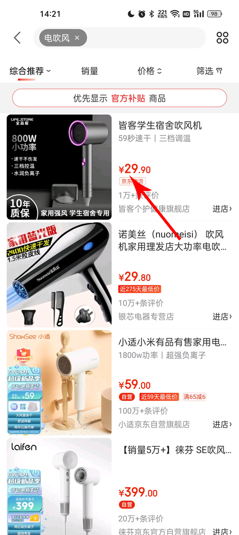 2、输入商品名称,找到自己感兴趣的商品;