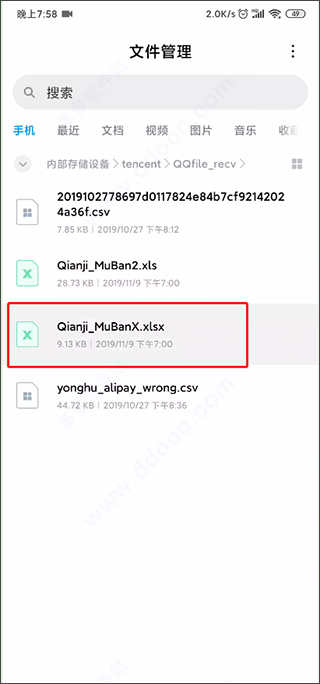 1、将该平台的账单文件,放入到手机SD卡中,目前只支持 Excel 或者 CSV 格式的文件