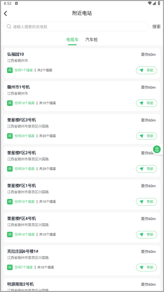 1、周边电站探寻:能够轻松查找附近归属于驴充充的二轮车充电桩、汽车充电桩站点的详尽信息。