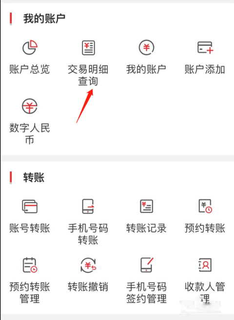 3、最后:点击【交易明细查询】选项就可以进行查看。