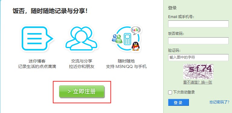 1、在本站下载饭否app,打开,我们可以看到一个登录页面,但是没有注册过怎么办呢?