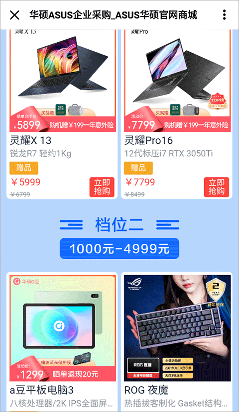 华硕商城官方移动购物平台,随时随地及时接收最新讯息,上新、特惠一个不漏。